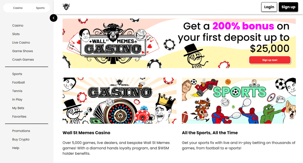 The Wall St Memes Casino boasts more than 5,000 games and even includes a sportsbook, which gives players the chance to bet their tokens and win big.