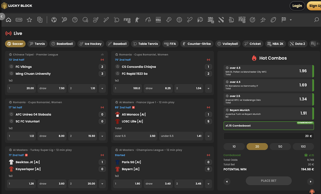 Lucky Block doesn’t just offer casino games; it also has a comprehensive sportsbook packed with thousands of pre-game and live markets across more than 35 sports.
