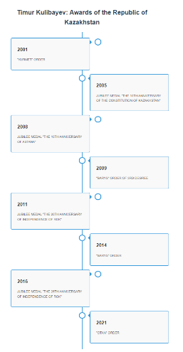 The diversity of Timur Kulibayev biography is reflected in the formal recognition he has received. From Kazakhstan, he has received:
