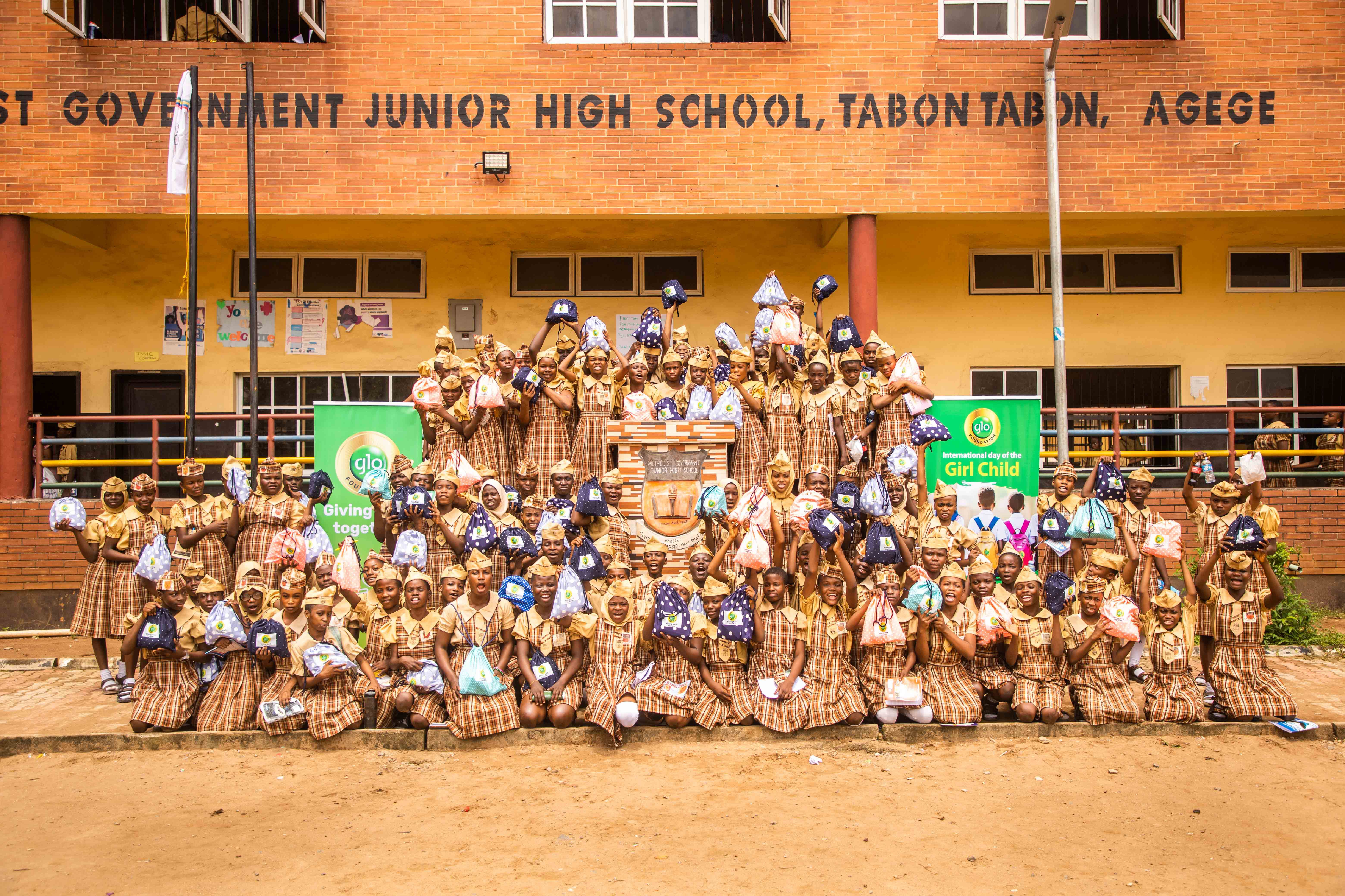 Students of Methodist Government Junior High School, Agege, Lagos, with the menstrual packs given them by Glo Foundation in Lagos as part of events marking this year’s edition of the International Day of the Girl Child.