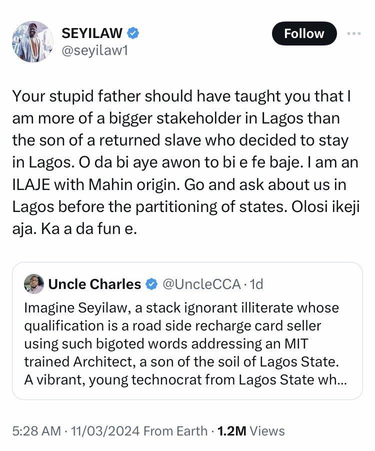 We also have Seyi Law, who had publicly supported Tinubu, who was elected President of Nigeria in the 2023 elections. This drew criticism from many people on social media, and beyond criticisms, threats!!! In May 2023, the comedian shared a highly offensive message a troll sent to his wife due to his political affiliation, threatening to kill their daughter. Threatening anyone is wrong, beyond a doubt, and the celebrity status makes it easy to hate on them.
