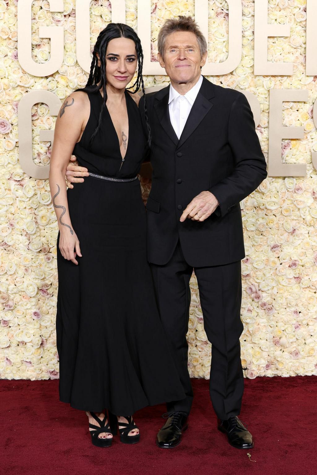 Giada Colagrande and Willem Dafoe attend the 81st Annual Golden Globe Awards at The Beverly Hilton on January 07, 2024 in Beverly Hills, California. (Photo by Kevin Mazur/Getty Images)