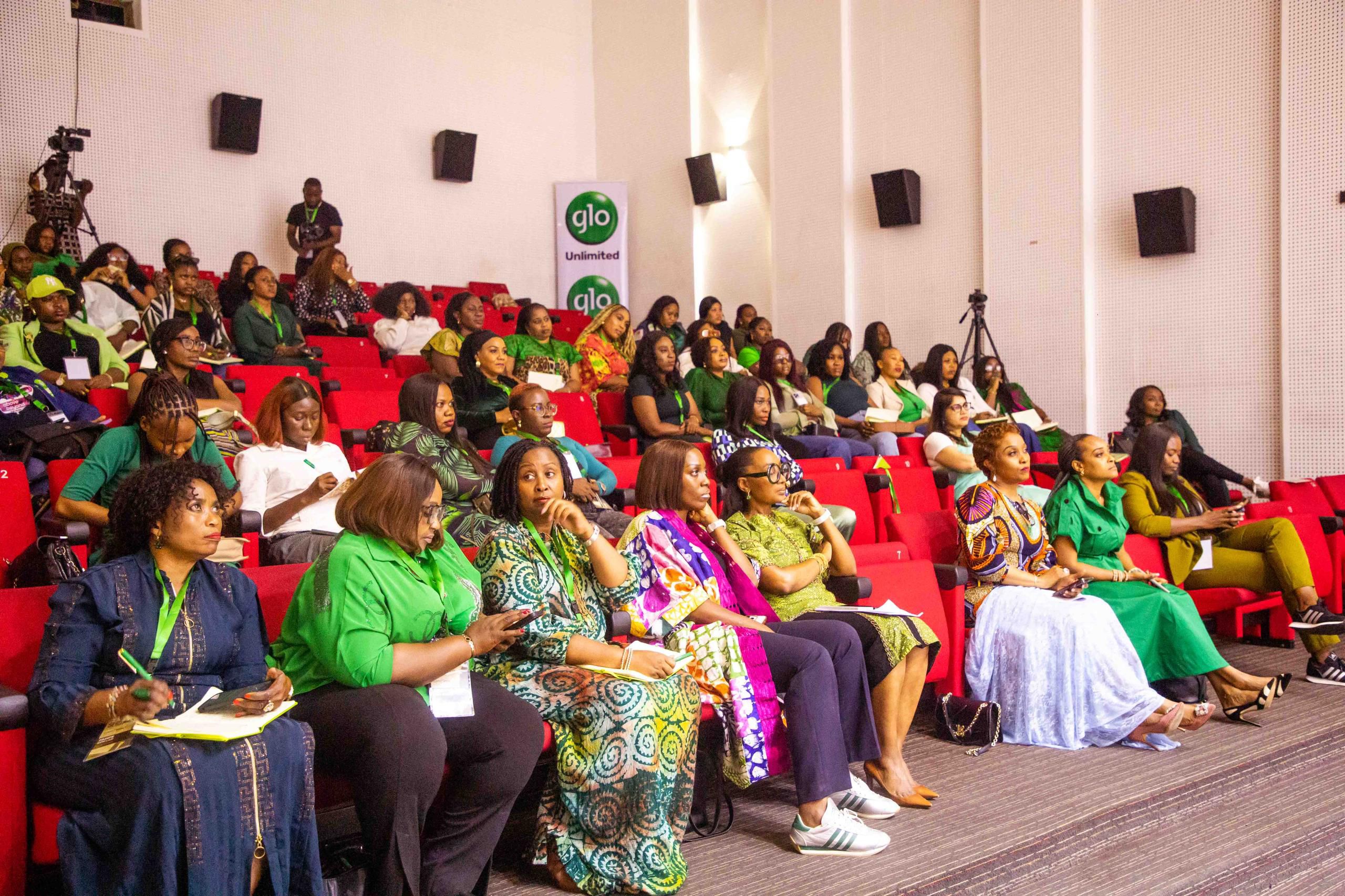 A cross section of female staff of Globacom at the SheGlows summit organized by the company at the Alliance Francaise, Mike Adenuga Centre, Lagos, on Friday evening.