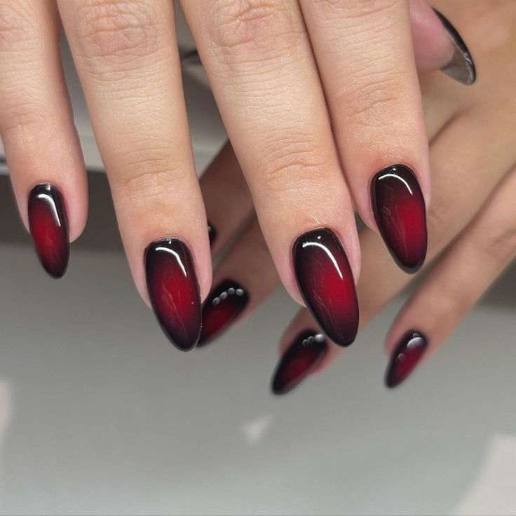 If you’re aiming for a seductive, vampiric vibe, dark red nails are the way to go. The rich, blood-like color paired with a glossy finish will leave your nails looking bold and sultry. This is the ideal nail design for anyone looking to bring their inner Vampire Diaries or Twilight fantasy to life through nails that are striking and dramatic.