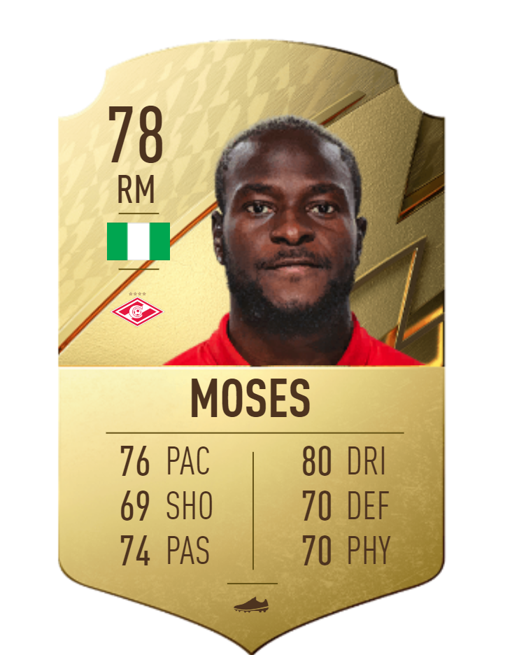 Similar to Iheanacho, Victor Moses is rated 78 Overall.