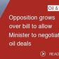Opposition grows over bill to allow Minister to negotiate oil deals
