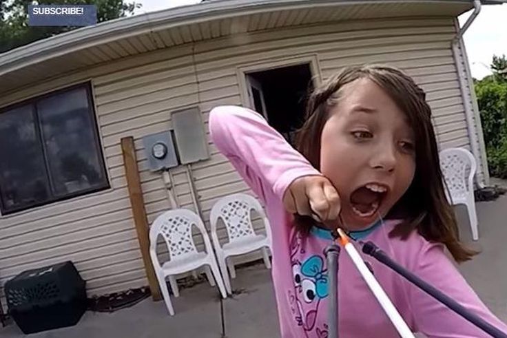 Girls pulls baby tooth with sling bow