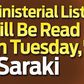 Ministerial list will be read on Tuesday, October 6
