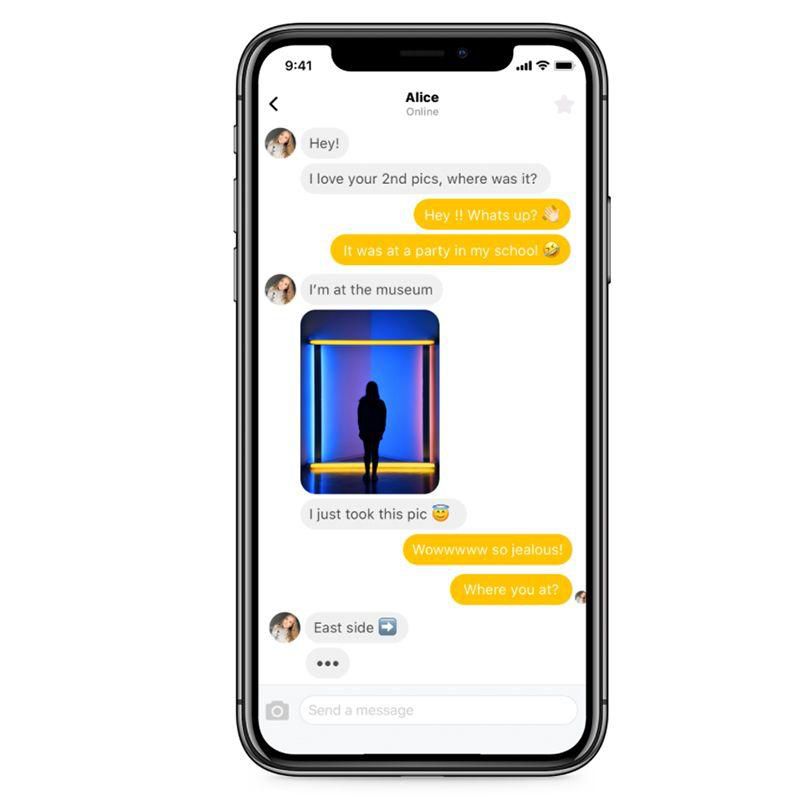 1) Bumble BFF Bumble is so much more than a dating app. You can toggle to a completely different version of the app called Bumble BFF to chat with other people in your area and set up dates to hang out. As far as profiles go, it's all pretty much the same: You upload photos and some info about yourself, and then you swipe left or right on people you think you'd vibe with. If you both swipe right, you have 24 hours to strike up a convo. Get it for IOS Get it for Android Price: Free Bumble