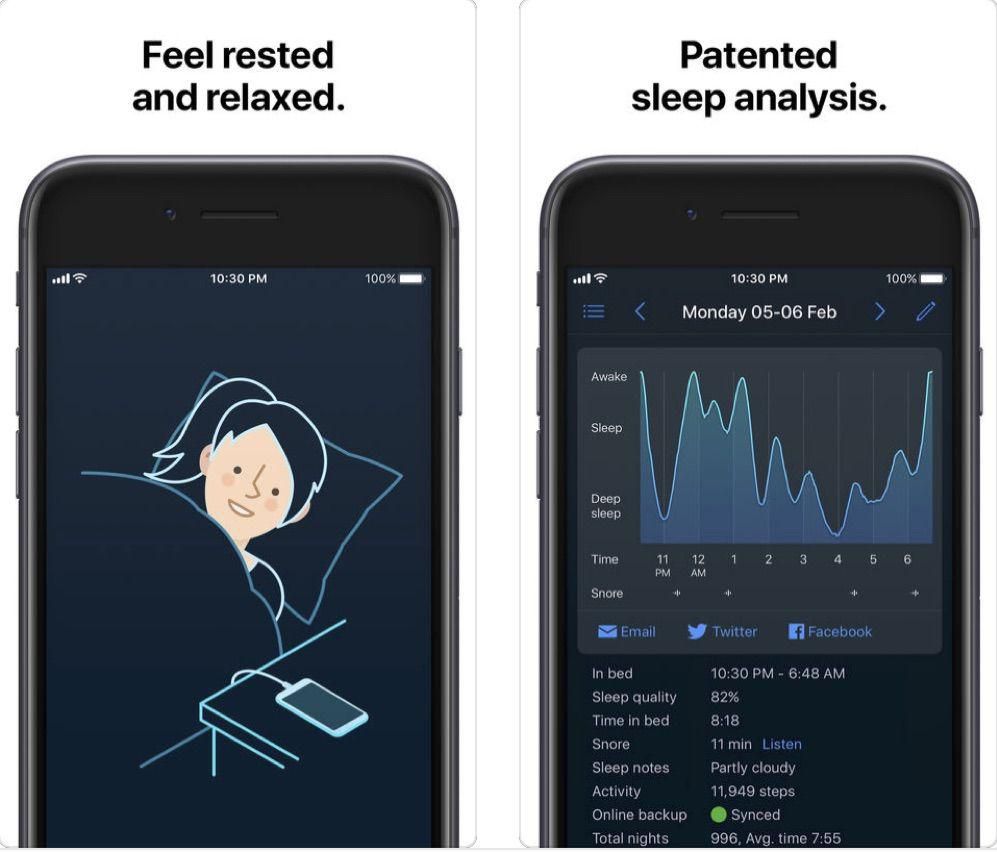 4) SleepCycle Sleep plays a crucial role in good health throughout life. If you dont get enough sleep every night, your body will have a hard time healing and repairing heart and blood vessels, balancing your hormones, and maintaining your blood sugar levels ( among many other issues ). Sleep Cycle tracks your quality of sleep, as well as your sleeping heart rate. But its most unique feature is that it wakes you up during your lightest sleep phase in the morning, making you feel well-rested and ready to tackle the day. Available here for iOS and Android. SleepCycle