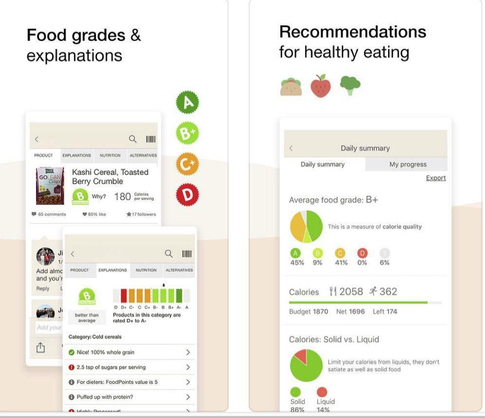 7) Fooducate Fooducate makes it easy to eat a balanced and healthy diet. As the app's name suggests, its goal is to teach you about the products you buy at the grocery store. Just scan over 250,000 barcodes to see a personalized nutrition grade, learn about the pros and cons of the product, and choose the healthiest option. Available here on iOS and Android. Fooducate/iTunes