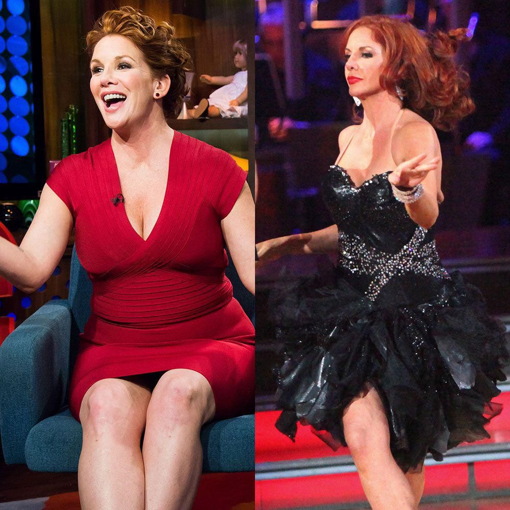 Melissa Gilbert The former Little House on the Prairie star dropped several dress sizes while competing in DWTS season 14 in 2012. Melissa and her partner Maksim Chmerkovskiy danced for eight weeks. I don't know pounds [lost] but I went from a size 6 to a 2, she told US Weekly . I have a 26-inch waist now. Getty Images