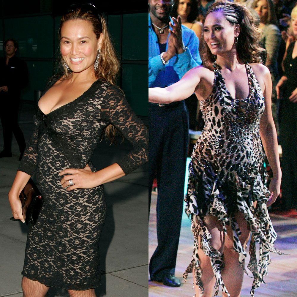 Tia Carrere The Hawaiian actress (best known for her role as Cassandra in Wayne's World) competed on season two a few months after giving birth. Tia cha-cha-ed her way to post-baby weight loss. Getty Images