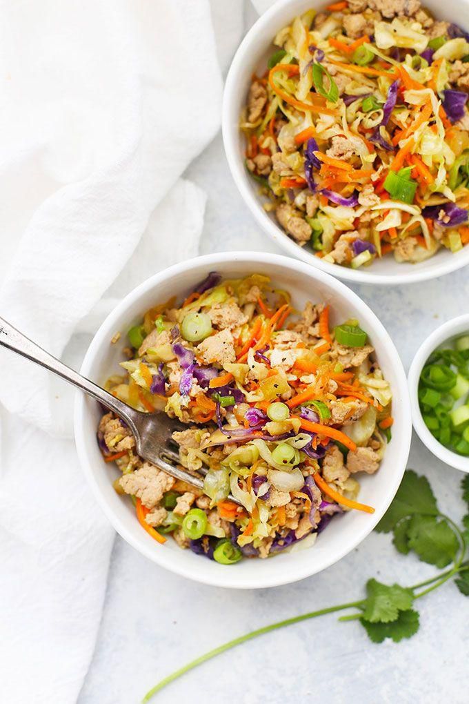 Egg Roll Bowls Ditch Chinese takeout and make this delicious and nutritious paleo ground turkey recipe instead from One Lovely Life . This deconstructed egg roll dish has ample protein and nutrients from veggies, and its gluten-free too! One Lovely Life