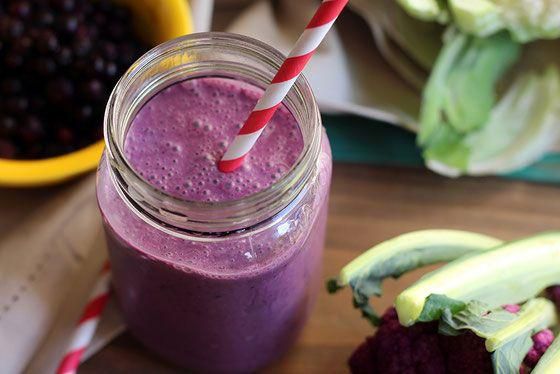 Vegan Wild Blueberry Cauliflower Smoothie Thanks to the blueberries and strawberries in this blend, you won't taste a shred of the cauliflower it also contains. GET THE RECIPE Per serving: 340 calories, 11 g fat (1 g sat), 320 mg sodium, 48 g carbs, 22 g sugar, 6 g fiber, 16 g protein Courtesy