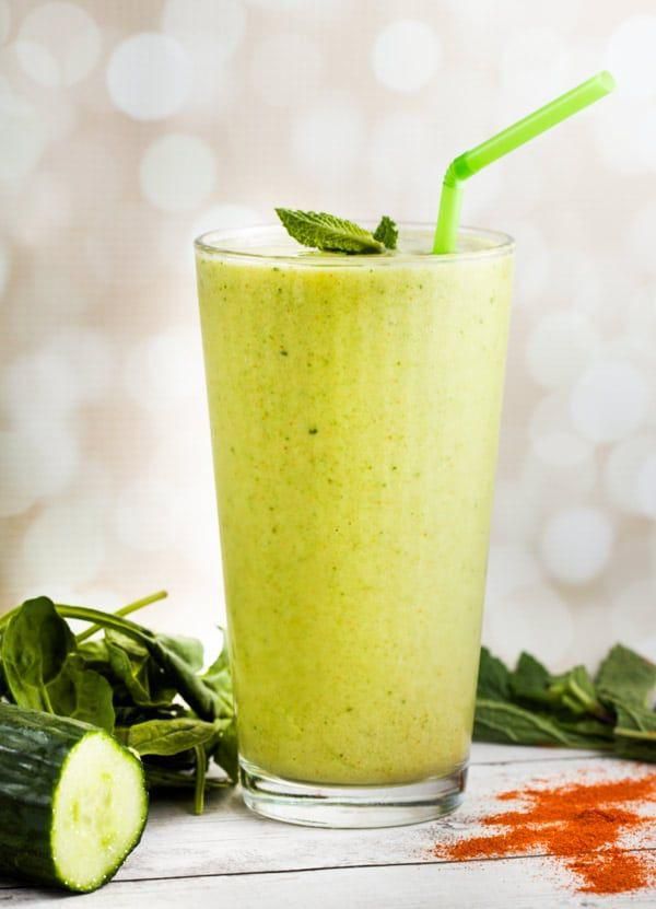 Mango Cucumber Lime Smoothie Sweet mango, refreshing cucumber, and zippy lime make every sip of this smoothie interesting. GET THE RECIPE Per serving: 170 calories, 4.6 g fat, 49.1 mg sodium 33.5 g carbs, 28.2 g sugar, 2.6 g protein Courtesy