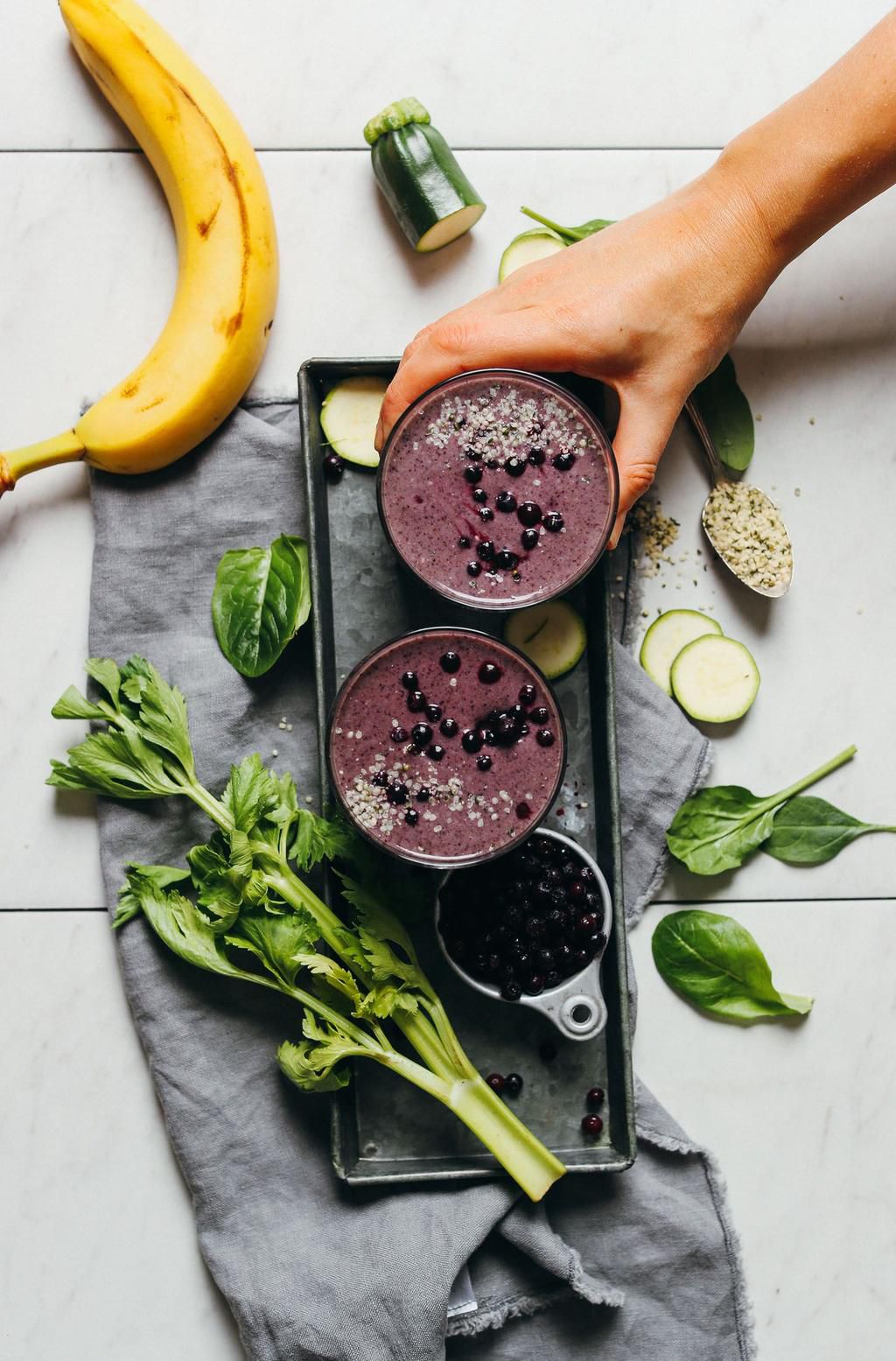 Creamy Zucchini Blueberry Smoothie Zucchini is pretty much undetectable in this rich smoothie, which also contains greens, banana, blueberries, hemp seeds, coconut milk, and maca. GET THE RECIPE Per serving: 218 calories, 10.1 g fat (6 g sat), 31.8 g carbs, 15.6 g sugar, 4.7 g fiber, 6.3 g protein Courtesy