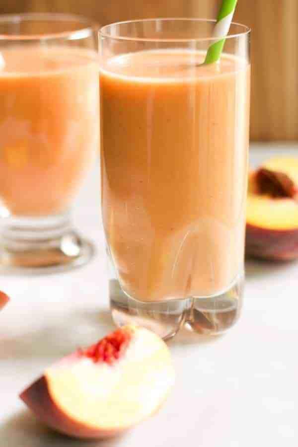 Peach Carrot Smoothie Peach and carrot make an unlikely but perfect combination in this sweet, earthy smoothie. GET THE RECIPE Nutrition per serving: 192 calories, 2.4 g fat (1.5 g sat fat), 42 mg sodium, 33.6 g carbs, 28 g sugar, 4 g fiber, 12.1 g protein Courtesy