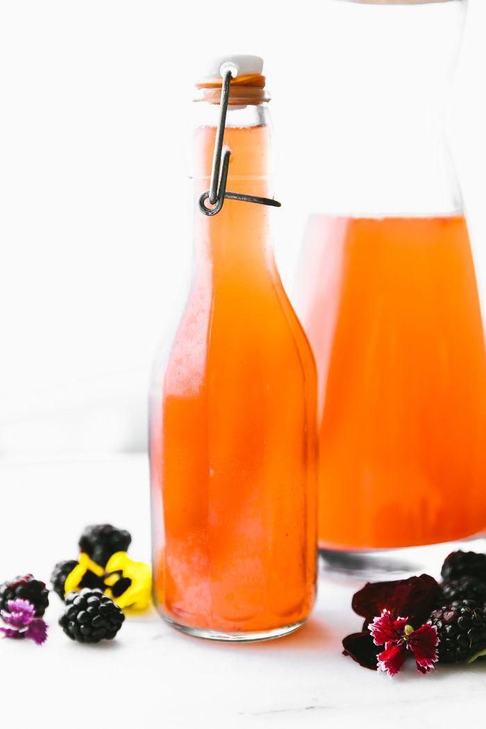 Homemade Fruit Kvass If youve ever wanted to DIY your own kombucha, this Russian take on the probiotic-rich drink is loaded with all kinds of delicious ingredients, like mixed berries, raw honey, sea salt, and lime. Bonus: Its got a surprisingly high amount of fiber. GET THE RECIPE Per serving: 30 calories, 0 g fat (0 g saturated), 7 g carbs, 3 g sugar, 293 mg sodium, 3 g fiber, 1 g protein Cotter Crunch