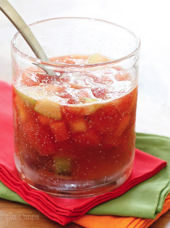Salpicon This Colombian punch contains an entire fruit salads worth of apples, oranges, banana, strawberries, and kiwi. Much less questionable than the punch from your frat party days of yore. GET THE RECIPE Per serving: 52 calories, 0 g fat (0 g saturated), 14 g carbs, 7 g sugar, 10 mg sodium, 2 g fiber, 0 g protein Skinnytaste