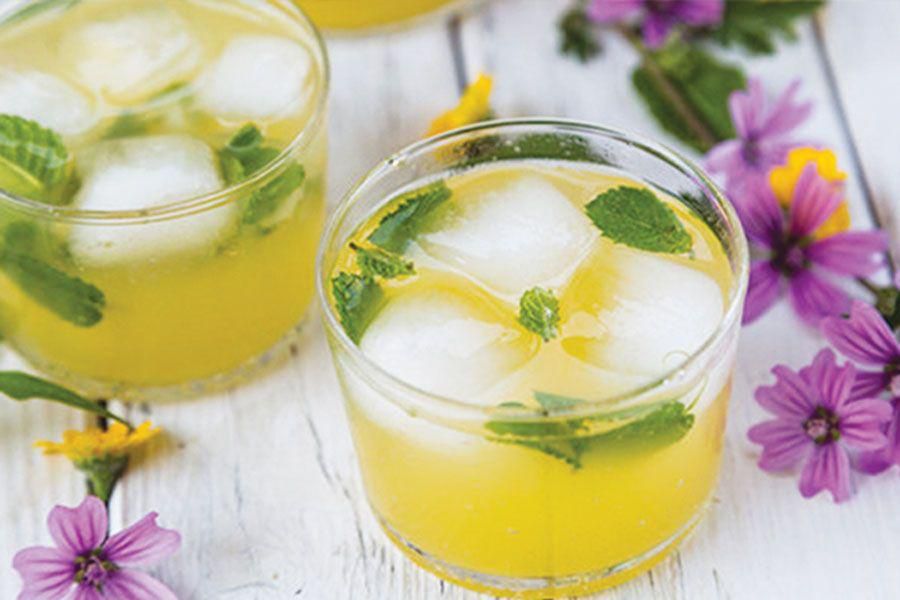 Iced Lemongrass Mint Tea Muddle the mint leaves in your serving pitcher to make the drinks extra tasty. The mint will give you mojito vibes. Get the Recipe Per serving: 24 cal, 0 g fat (0 g sat), 0 g protein, 3 mg sodium, 6 g carb, 6 g sugars (6 g added sugars), 0 g fiber Chelsie Craig