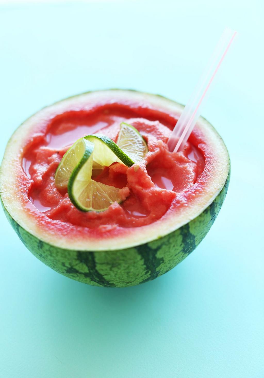 Coconut Lime Watermelon Slushie Back in the day, you probably would have doused this slushie in vodka. Made with whole watermelon and coconut milk, it's equally delicious (and hydrating) without the booze, though. GET THE RECIPE Per serving: 213 calories, 10 g fat (9 g saturated), 34 g carbs, 24 g sugar, 11 mg sodium, 3 g fiber, 3 g protein Minimalist Baker