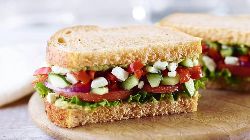 Panera: Mediterranean Veggie Sandwich This popular chain is perfect when you're in a bind, thanks to their many veggie-packed options. Ivey loves that they offer half-size portions of their salads and sandwiches. (Bonus: They have a TON of vegan options .) If I'm craving a sandwich, I go for the Mediterranean Veggie for a crisp, refreshing option," says Ivey. "It provides plant-based protein and fiber to fill me up. (She washes it down with a Plum Ginger Hibiscus Tea .) Per serving: 560 calories, 12 g fat (3 g saturated), 94 g carbs, 9 g sugar, 1,400 mg sodium, 7 g fiber, 20 g protein Panera