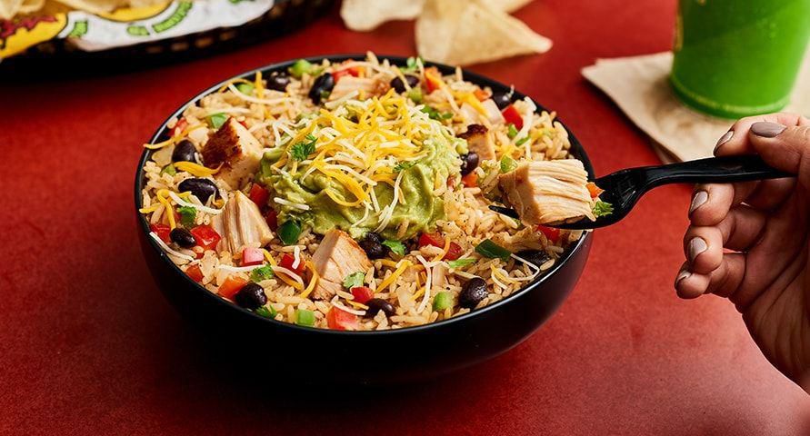 Moes Southwest Grill: The Earmuffs Bowl [These bowls] all come with guacamole, so that immediately grabs my attention, says Moore. Try the veggie, tofu, or chicken bowl and pile on more vegetables like grilled peppers, onions, and mushrooms. This meal will be full of fiber and protein, so youre sure to feel satisfied. Per serving: 684 calories, 22 g fat (8 g saturated), 73 g carbs, 0 g sugar, 1,450 mg sodium, 12 g fiber, 45 g protein Moe's