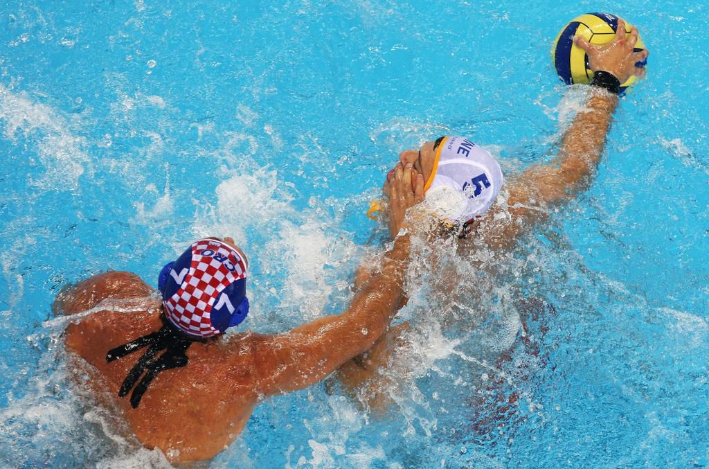 No groin grabbing allowed. Water polo is a tough sport, but there's no excessive force and that includes groin grabbing. Jeff Gross - Getty Images