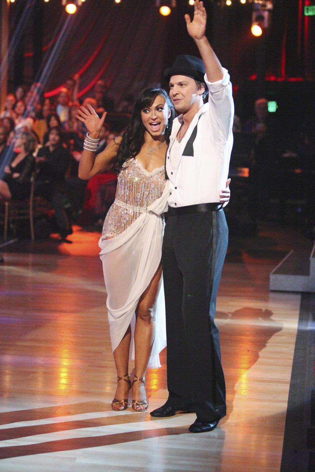 Mario Lopez Mario Lopez and Karina Smirnoff weren't just dance partners on the third season of DWTS. The actor and professional dancer actually dated for two years after meeting on the competition show. The couple placed second, losing to former NFL running back Emmitt Smith. Adam Larkey - Getty Images
