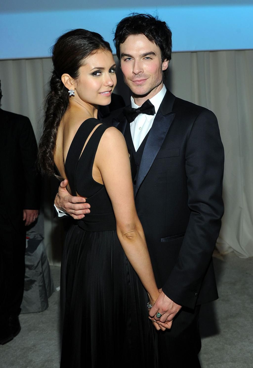 Nina Dobrev and Ian Somerhalder Nina Dobrev and Ian Somerhalder began dating while filming The Vampire Diaries. The drama between the Salvatore brothers was all for the show. It was clear Ian had Ninas heart for the three years they dated . The couple ended things in 2013, but the two are still very supportive of one another. I've said this before, that we didn't break up because anything bad happened or because there wasn't love or friendship, Nina told E! News . I love him and the friendship is still strong and I think he's great and I care about him. And that didn't change. Yes, we're professional and that's fine. We were friends long before we dated and we still are now. Larry Busacca - Getty Images