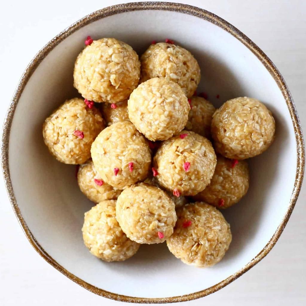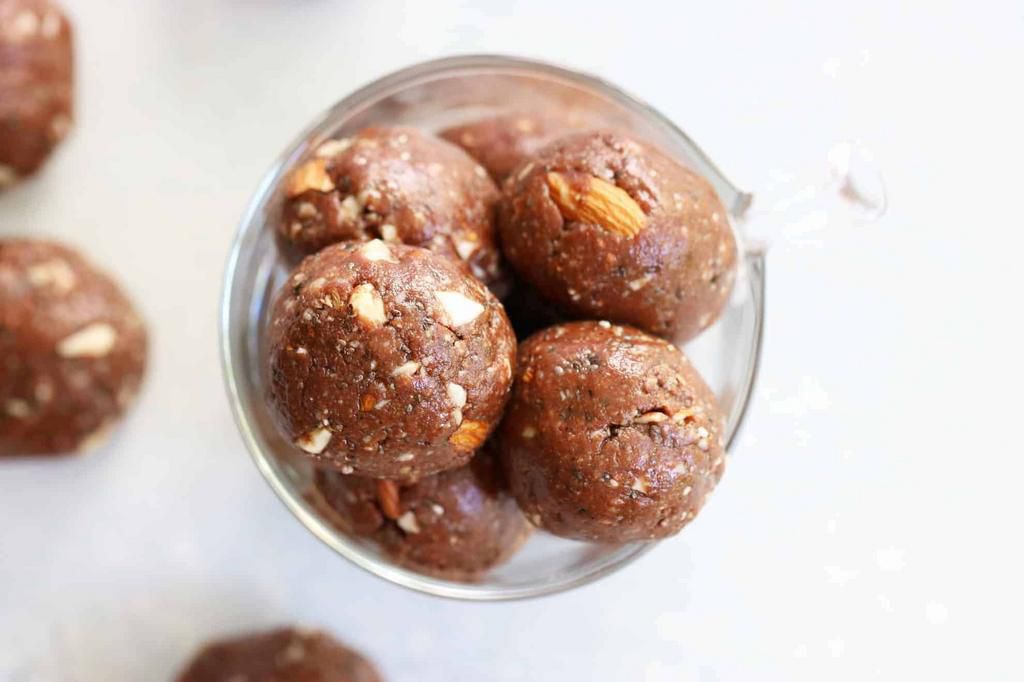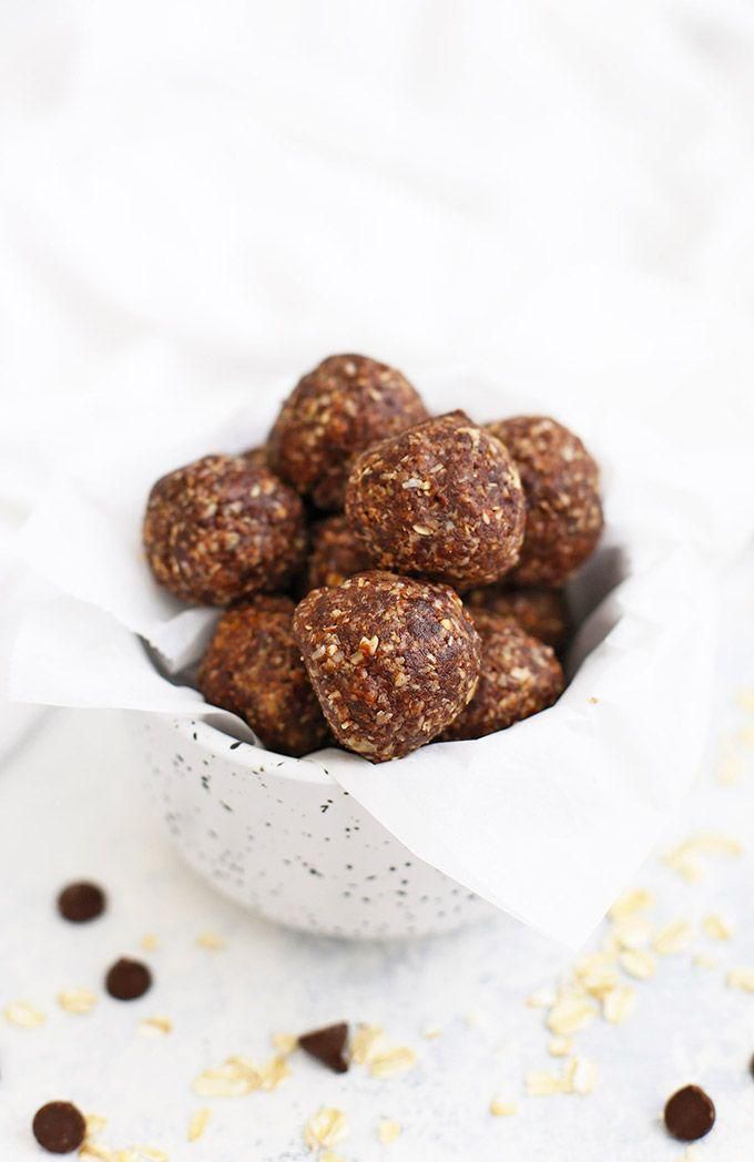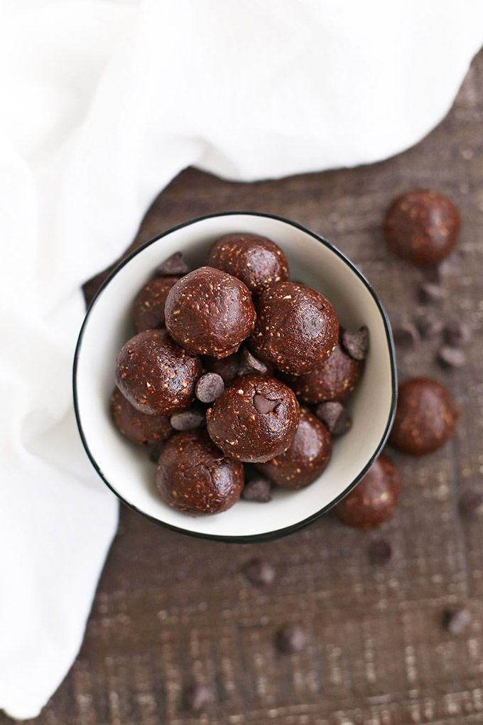Basic Vegan Protein Balls When you just need simple, make these. (Add protein powder for extra oomph.) GET THE RECIPE Per serving: 86 calories, 5.1 g fat, 7.9 g carbs, 47.6 mg sodium, 3.6 g sugar, 1.4 g fiber, 2.6 g protein One Lovely Life