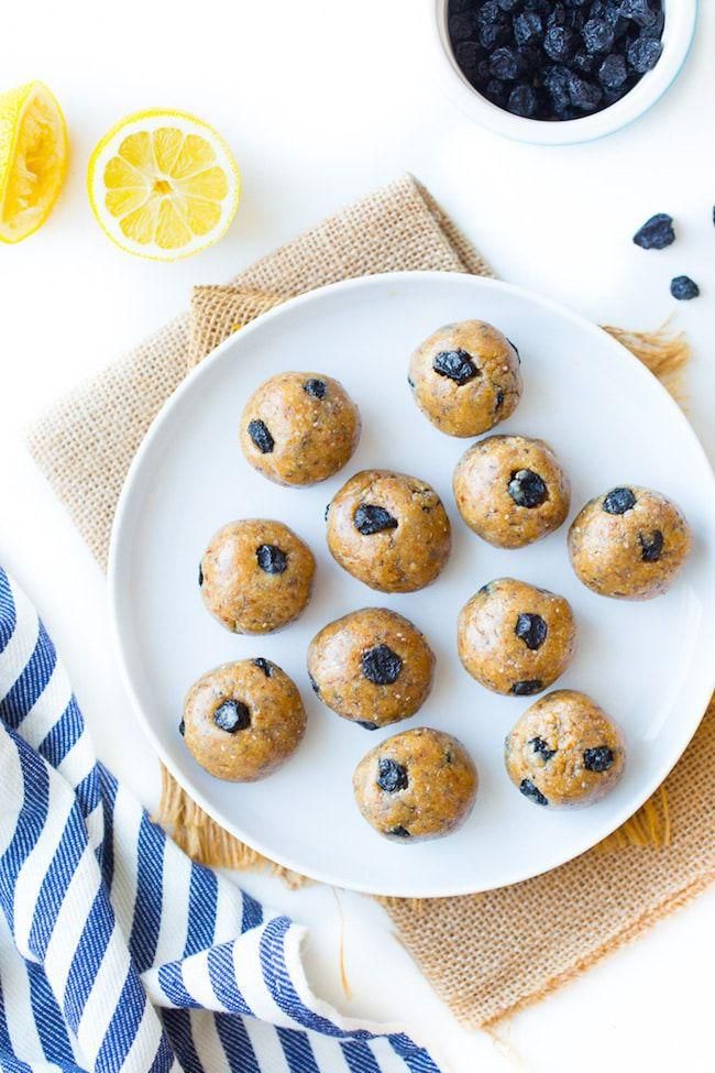 Blueberry Paleo Energy Balls These balls pack protein from almond butter and fruitiness from blueberries to keep things balanced. GET THE RECIPE Per serving: 140 calories, 1 g sat fat, 55 mg sodium, 11 g carbs, 2 g fiber, 6 g sugar, 4 g protein A Saucy Kitchen