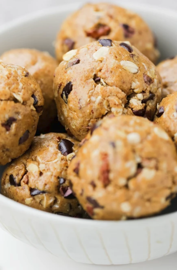 6-Ingredient Cookie Dough Protein Bites Made with coconut flour, these balls taste like raw cookie dough, but are way better for you. GET THE RECIPE Per serving: 115 calories, 7.2 g fat (2.7 g sat), 10.1 g carbs, 3.2 g fiber, 4.8 g sugar, 49.4 mg sodium, 3.4 g protein Key To My Lime
