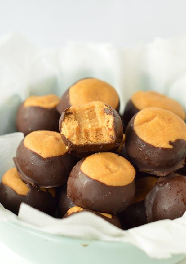 Buckeye-Style Peanut Butter Balls Loaded with healthy fats and low in sugar, these Buckeye-like protein balls are total cravings-crushers. GET THE RECIPE Per serving: 130 calories, 10.3 g fat, 7.3 g carbs, 2.4 g sugar, 3.6 g fiber, 4.4 g protein Sweet as Honey