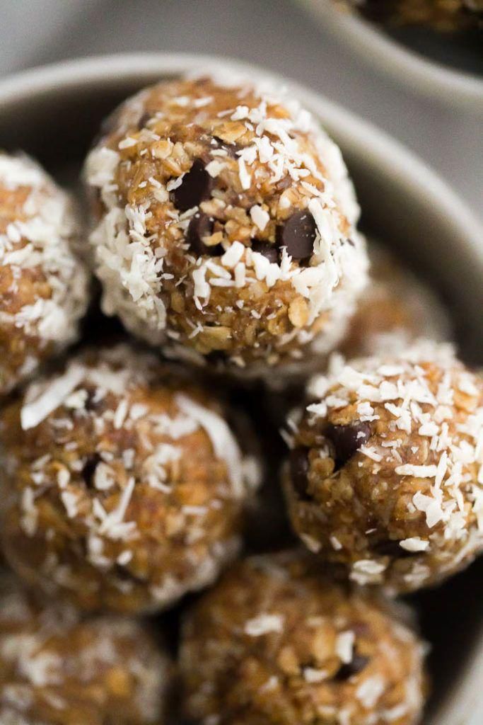 Chocolate Coconut Protein Balls Almond Joy in healthy ball form? Don't mind if I do. GET THE RECIPE Per serving: 58 calories, 4.7 g fat (2.4 g sat), 2 g carbs, 0.8 g fiber, 36 mg sodium, 0.7 g sugar, 3.1 g protein Cotter Crunch