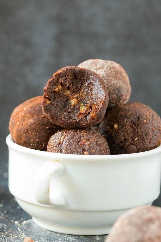 Peanut Butter Cookie Dough Truffles If you're craving dessert, that chocolate drizzle won't disappoint. GET THE RECIPE Per serving: 168 calories, 4 g sat fat, 16 g carbs, 130 mg sodium, 10 g sugar, 3 g fiber, 4 g protein A Saucy Kitchen