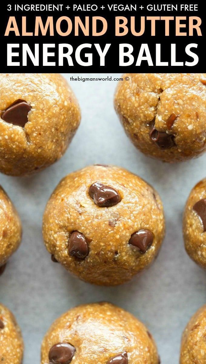 Paleo Salted Almond Protein Balls Grab some dates, salted almonds, almond butter, and chocolate chips, and voila, you've got a paleo snack everyone will love. GET THE RECIPE Per serving: 75 calories, 5 g fat, 8 g carbs, 3 g fiber, 4 g protein The Big Man's World