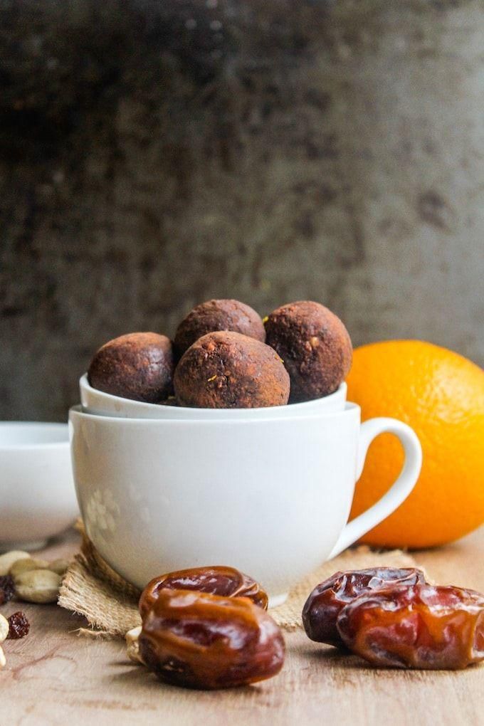 Chocolate Orange Bites Chocolate and orange are a match made in heaven in this out-of-the-box protein ball recipe. GET THE RECIPE Per serving: 158 calories, 1 g sat fat, 23 mg carbs, 3 mg sodium, 14 g sugar, 2 g fiber, 3 g protein A Saucy Kitchen