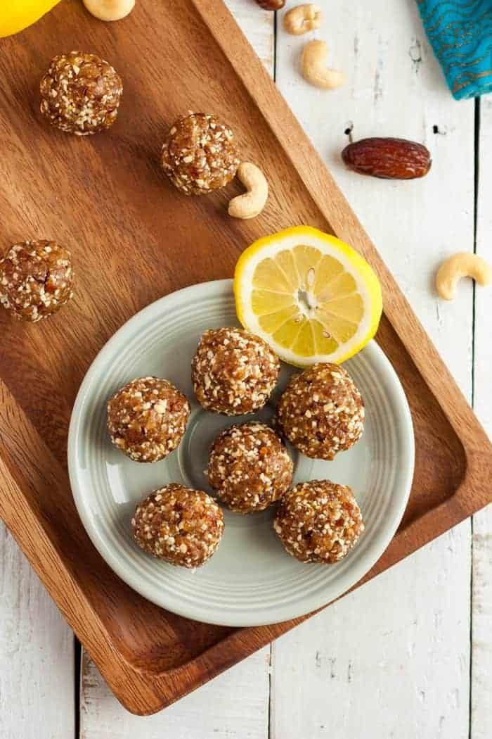Lemon Bliss Balls These are basically your favorite Larabar in ball form. GET THE RECIPE Per serving: 88 calories, 3 g fat (1 g sat), 12 g carbs, 2 g fiber, 11 g sugar, 1 mg sodium, 2 g protein Sustainable Cooks