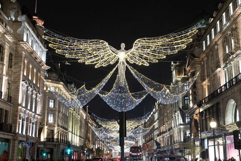 Christmas displays and decorations. Oxford Street, which is close to theatres that show plays and musicals, is well-known for its yearly light shows and its stunning array of eateries and retail establishments