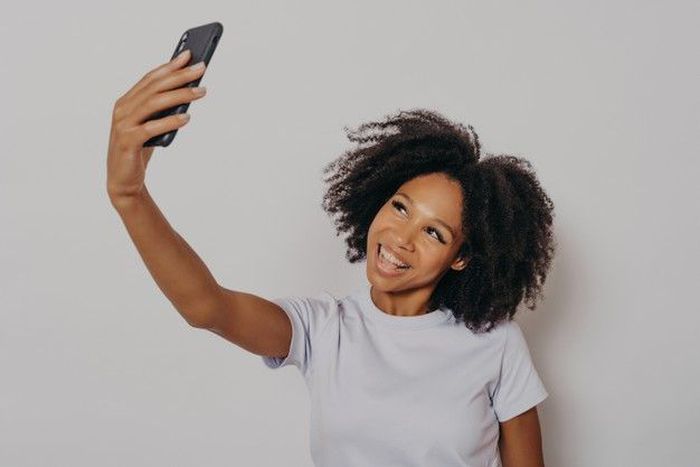 Tip: Ask the person taking the photo to hold the camera at eye level or slightly above. This higher angle is more flattering and can make you look younger. If you're taking a selfie, raise the camera a bit and look up with your eyes.