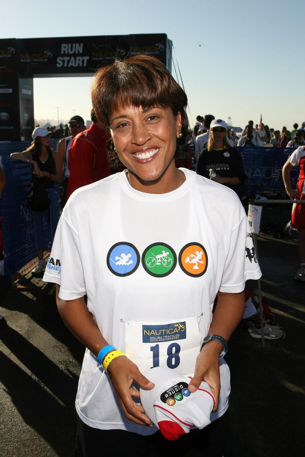 Robin Roberts The Good Morning America host poses at the starting line of a triathlon in 2006. Roberts was competing in the 20th annual Nautica Malibu Triathlon. Jesse Grant - Getty Images
