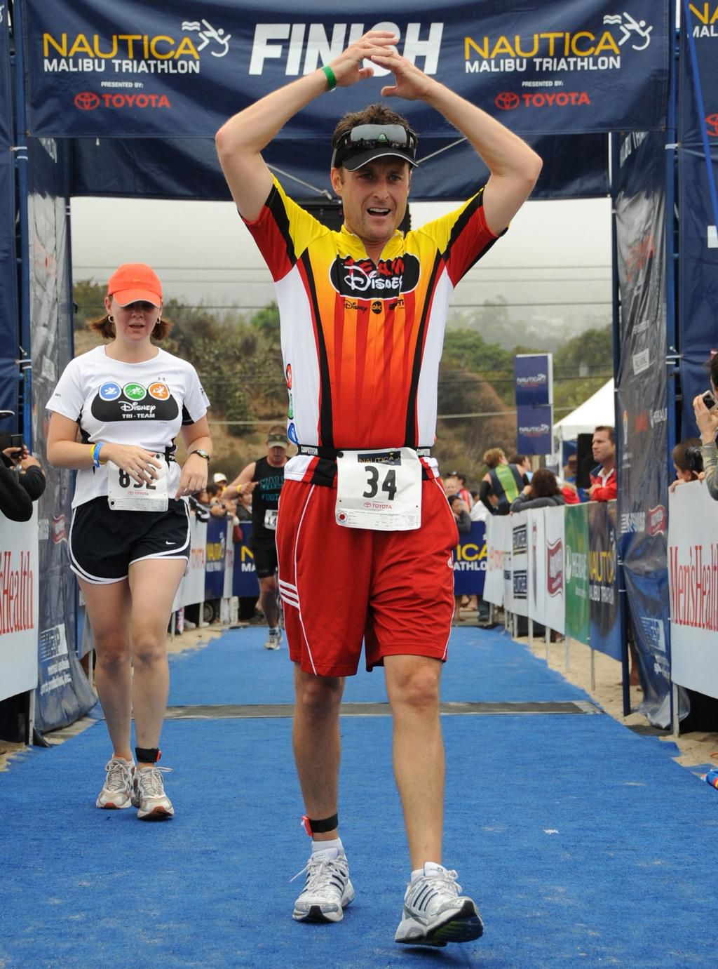 Jon Cryer The Two and a Half Men star finished the 2008 Nautica Malibu Triathlon in 1:53:36. The actor scared many when he crashed his bike four years later during the same race. Gregg DeGuire - Getty Images