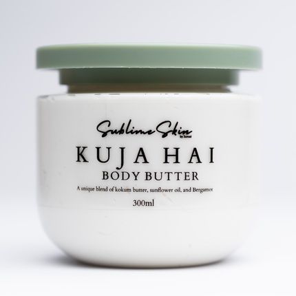 Kuja Hai by Sublime Skin is the epitome of luxury body care. This premium body butter is for anyone who wants an addition of active ingredients to the moisturizing formula. “Kuja Hai” is Swahili for come alive and that is exactly what it does to the skin. This deeply hydrating formula, enriched with kokum and mango butter, moisturises and softens, while sunflower oil and glycerine lock in moisture for long-lasting hydration. The inclusion of niacinamide, azelaic acid, and kojic acid dipalmitate works to even out skin tone, reduce blemishes, and brighten dull, tired skin, leaving it radiant and smooth.