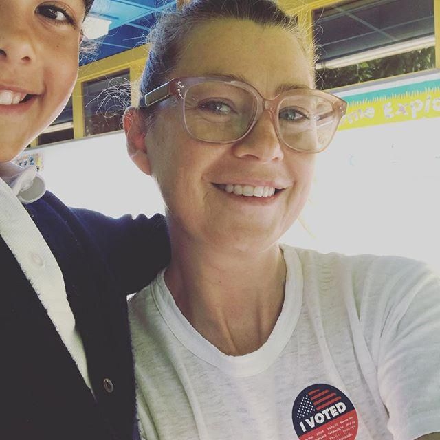 5) November 2018 Pompeo is giving us ~cute~ and ~nerdy~ inspo with these oversized pink glasses. She's got on an 'I Voted' sticker and poses with her lil kiddo, encouraging others to cast their ballot, too. See the original post on Instagram ellenpompeo@Instagram