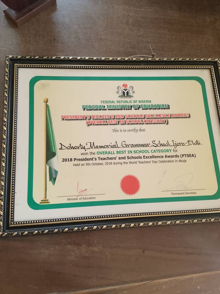 In 2017, the Doherty Memorial Grammar School (DMGS) Ijero-Ekiti emerged the second best school in Ekiti State, before following it up with an even bigger feat, carting home the Best School In Nigeria award in 2018.