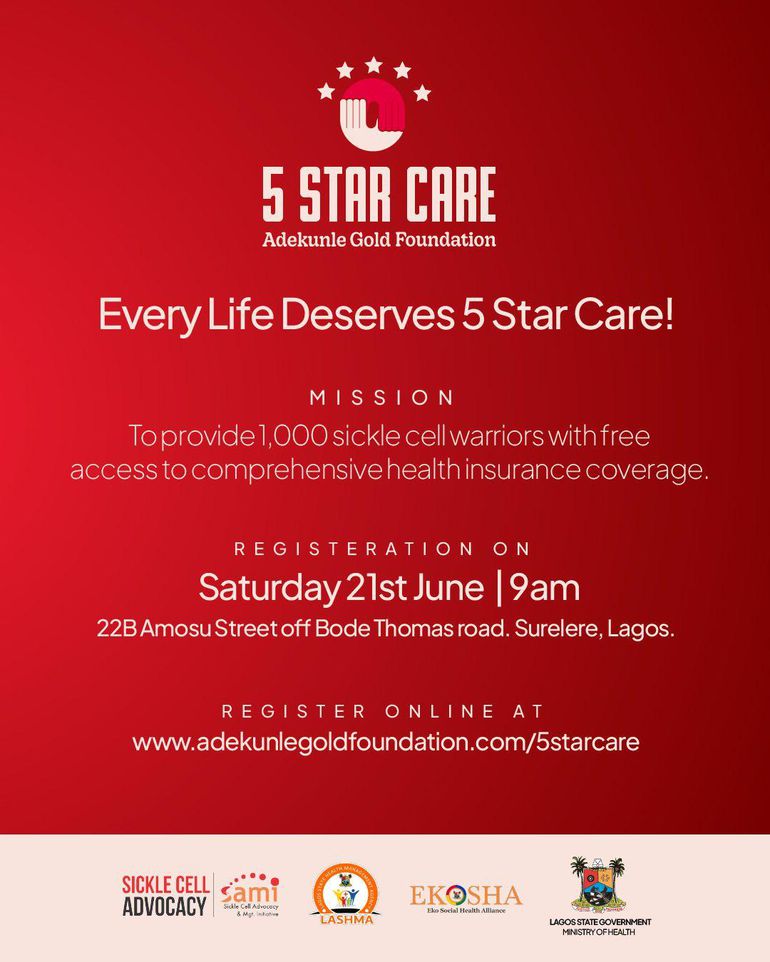 For this initiative, the Adekunle Gold Foundation is partnering with the Lagos State Health Scheme Management (LASHMA), Sickle Cell Management Initiatives (SAMI), and the Lagos State Ministry of Health