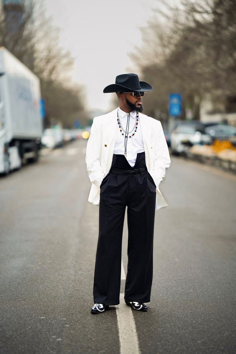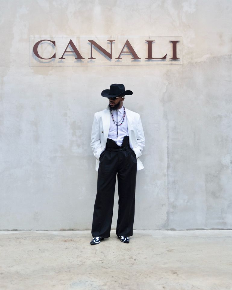 From an intricately detailed and elegant look off the Ugo Monye SS25 collection which was slayed to perfection during Milan Fashion Week to the vibrant three piece Orange Culture SS25 outfit and the Iconic Custom Deji & Kola Leather outfit worn during Paris Fashion Week, it is safe to say that Akin Faminu definitely took the Men’s Fashion Season by storm!