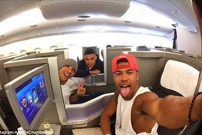Chamberlain took to his Instagram to post a photo of himself with his friends in a plane.